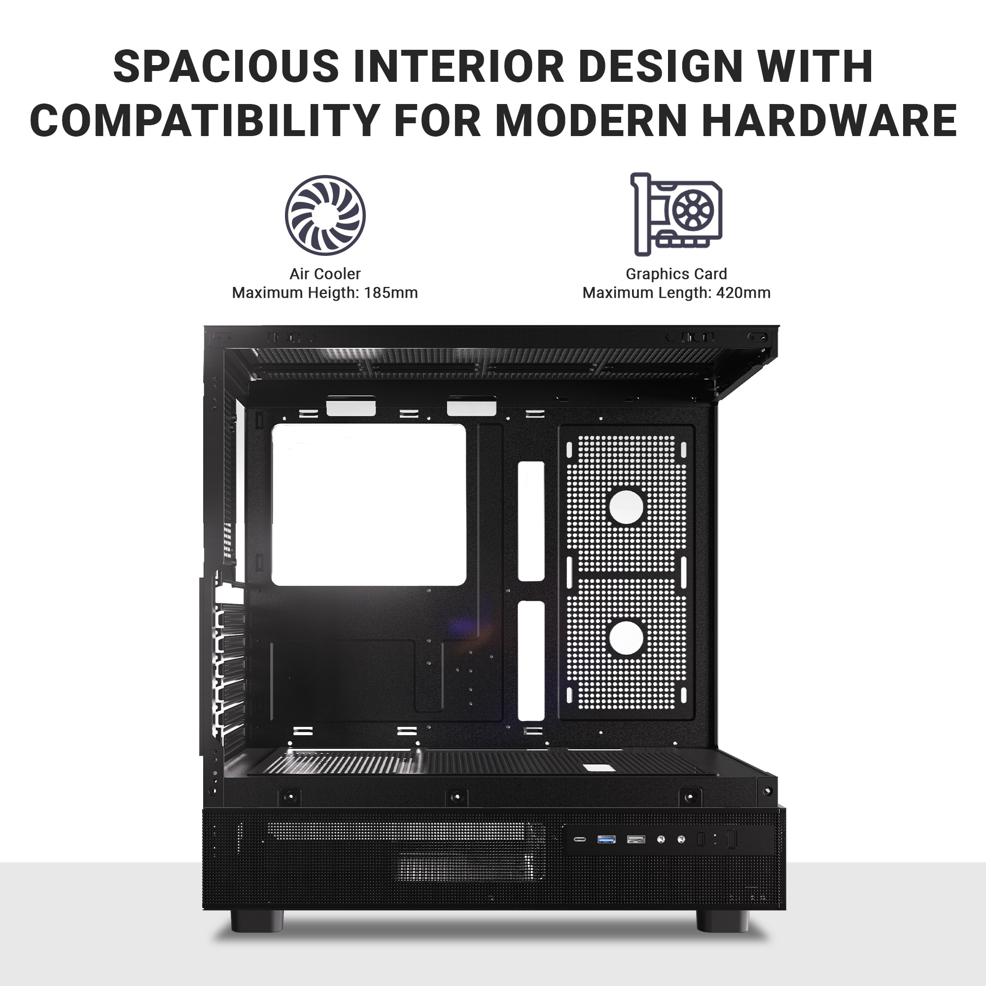 • Spacious GPU & cooler support – With support for graphics cards up to 420 mm in length and CPU coolers up to 185 mm tall, the Crystal X6 ensures compatibility with high-end gaming hardware.