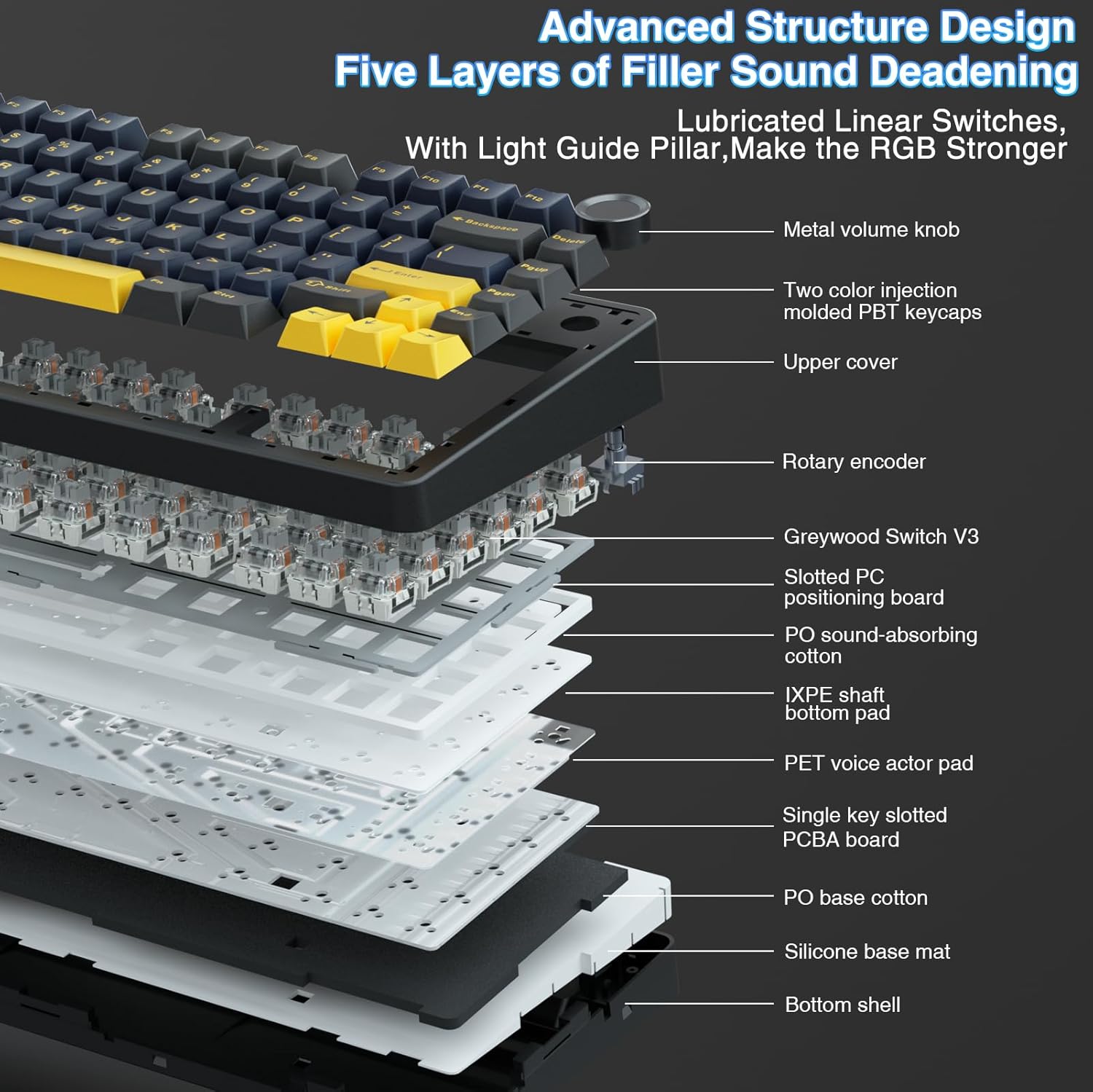AULA F75 Hot Swappable Mechanical RGB Gaming Keyboard with Multifunctional Knob