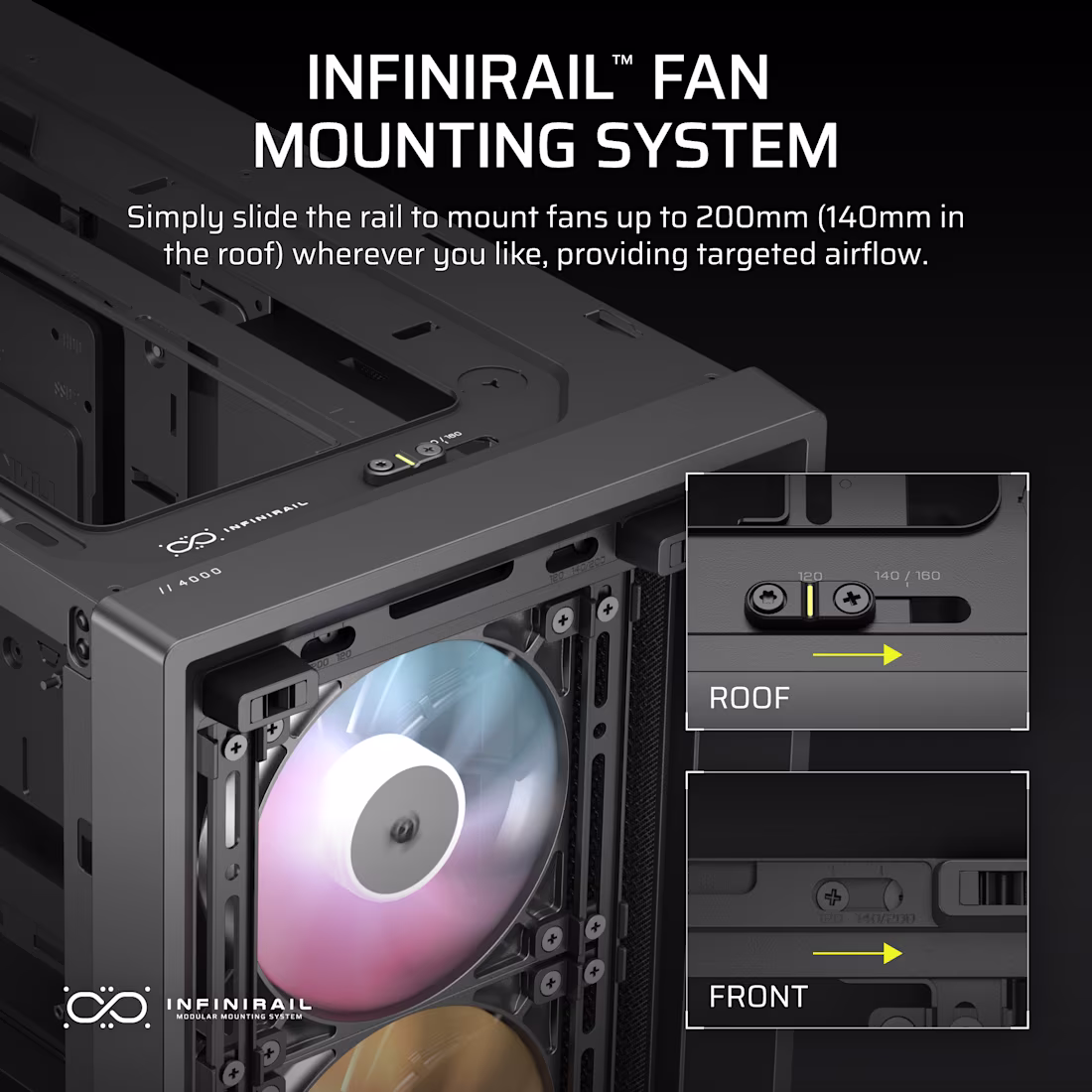 | Fan Support | Up to 12 × 120 mm fans in various positions; supports 120 mm / 140 mm / 200 mm (front), 120/140 mm (top/side/rear) depending on configuration. |