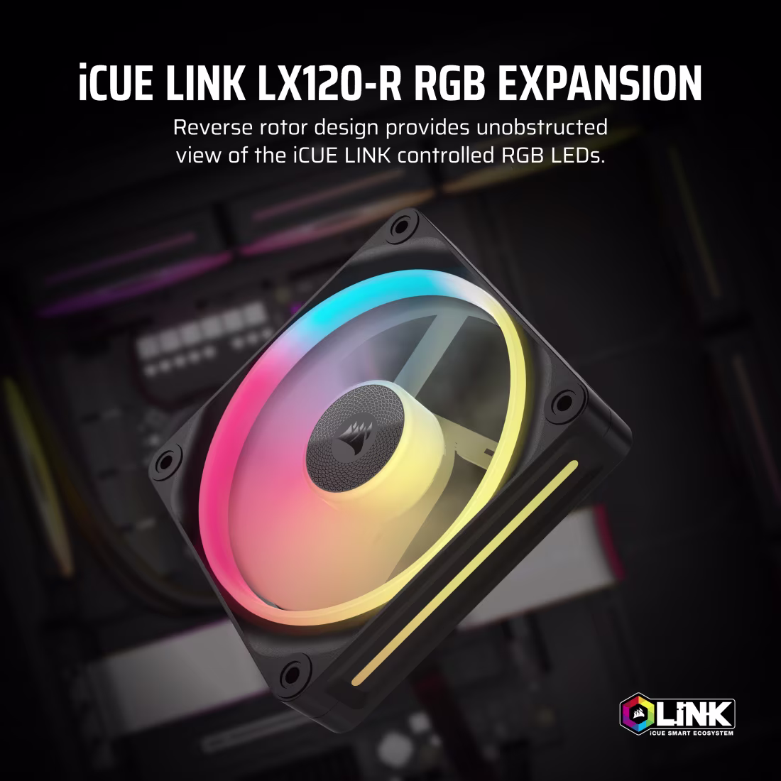 Corsair Fan LX-R RGB Series, iCUE LINK LX120R RGB, 120mm RGB Fan, Single Fan – Black