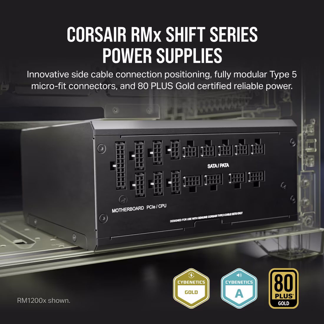 The Corsair RM850x SHIFT PSU delivers balanced power, modern compatibility, build-friendly modular design, silent cooling, and long-term reliability.