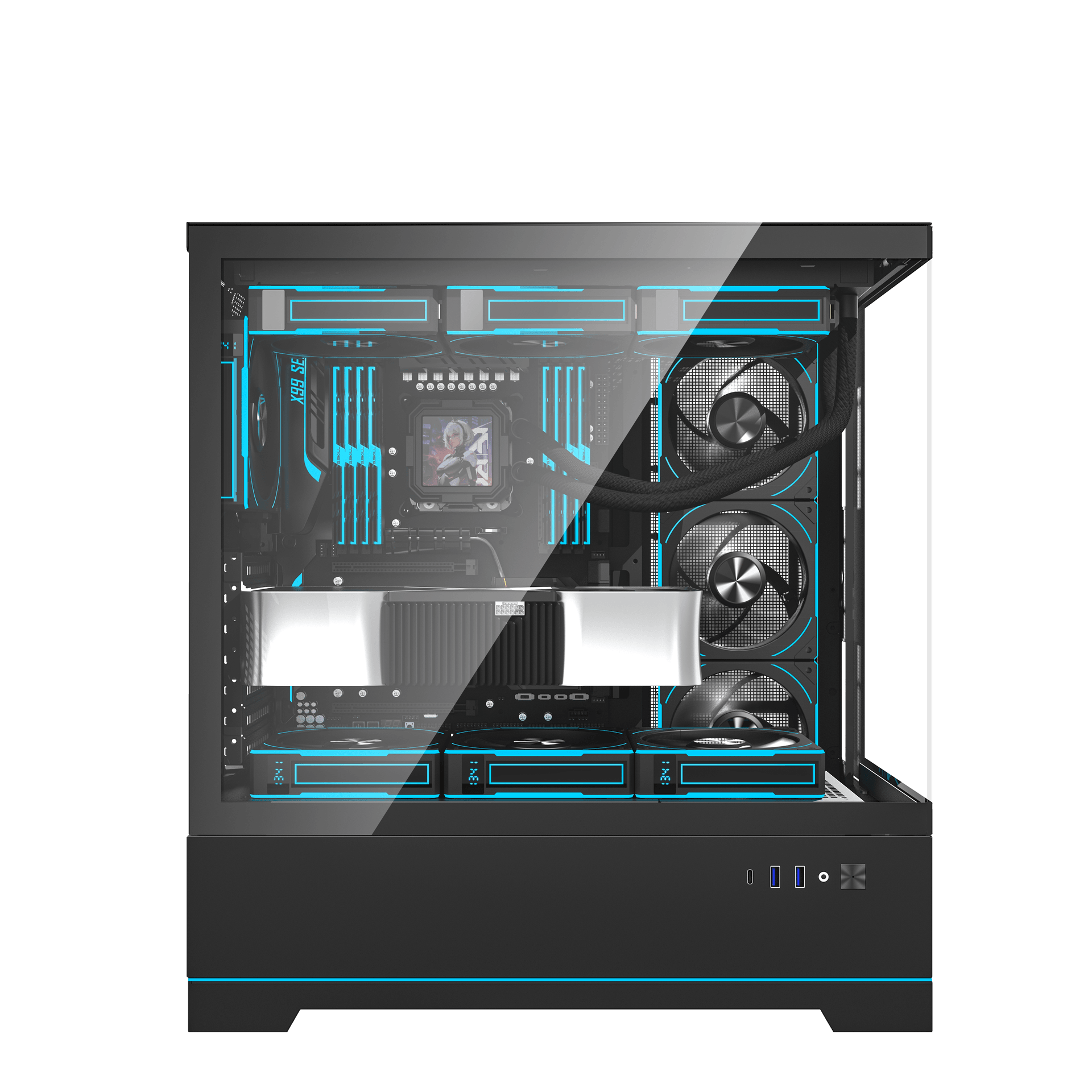 With support for ATX, Micro-ATX and Mini-ITX motherboards, the DY451 Pro provides ample space for large GPUs, multiple storage drives and efficient cable management. Its airflow-focused design includes wide ventilation channels and support for multiple cooling configurations, ensuring your system stays cool during gaming, streaming or heavy multitasking.