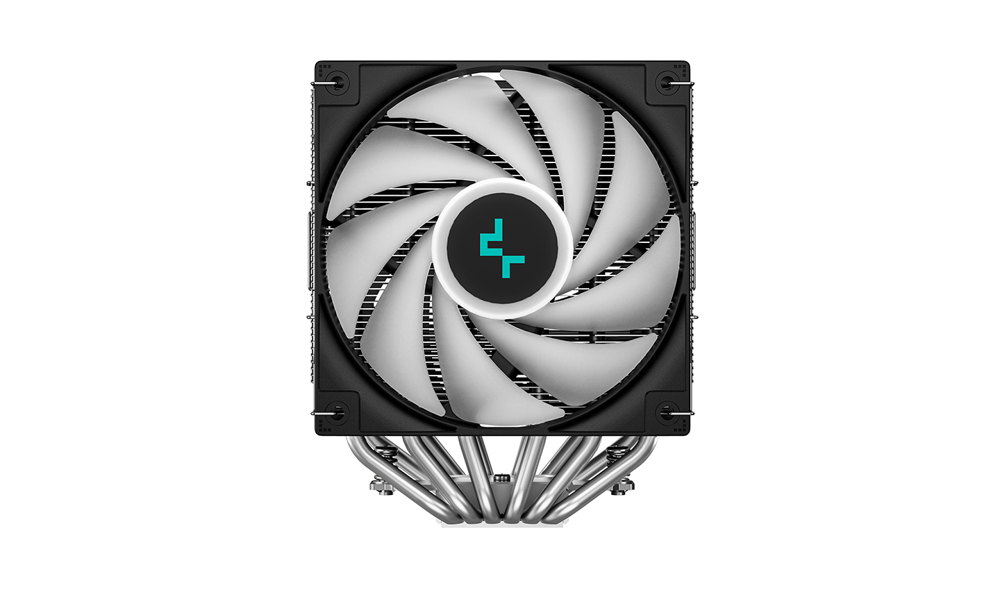 Its dual-tower heatsink, composed of six Ø 6 mm direct-touch copper heat pipes and a dense “Matrix Fins Array” of aluminium fins, ensures heat is drawn efficiently away from the CPU and expelled effectively.