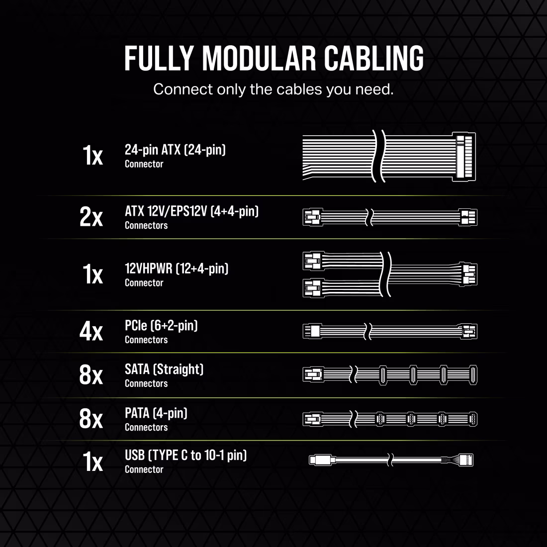 | Modularity & Cable Design | Fully modular; use only needed cables to reduce clutter and improve airflow |