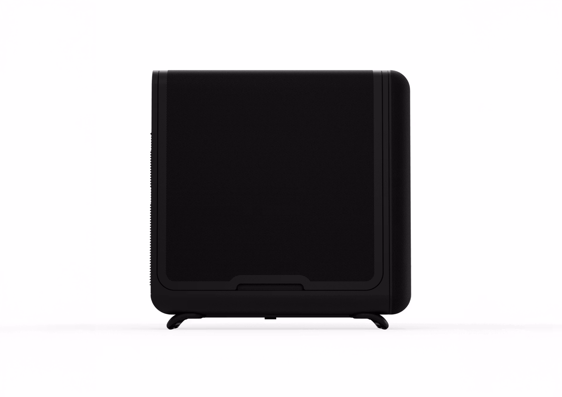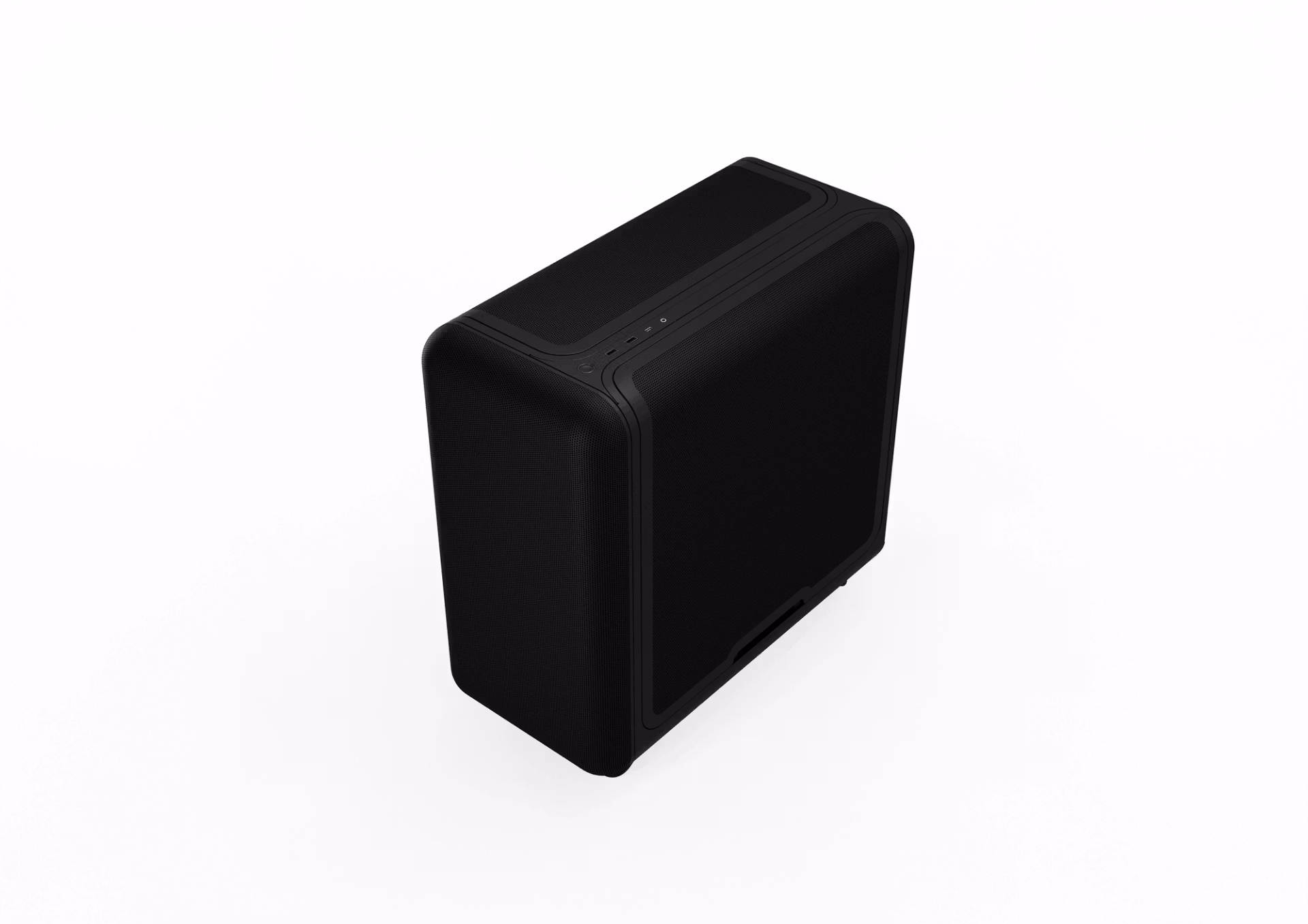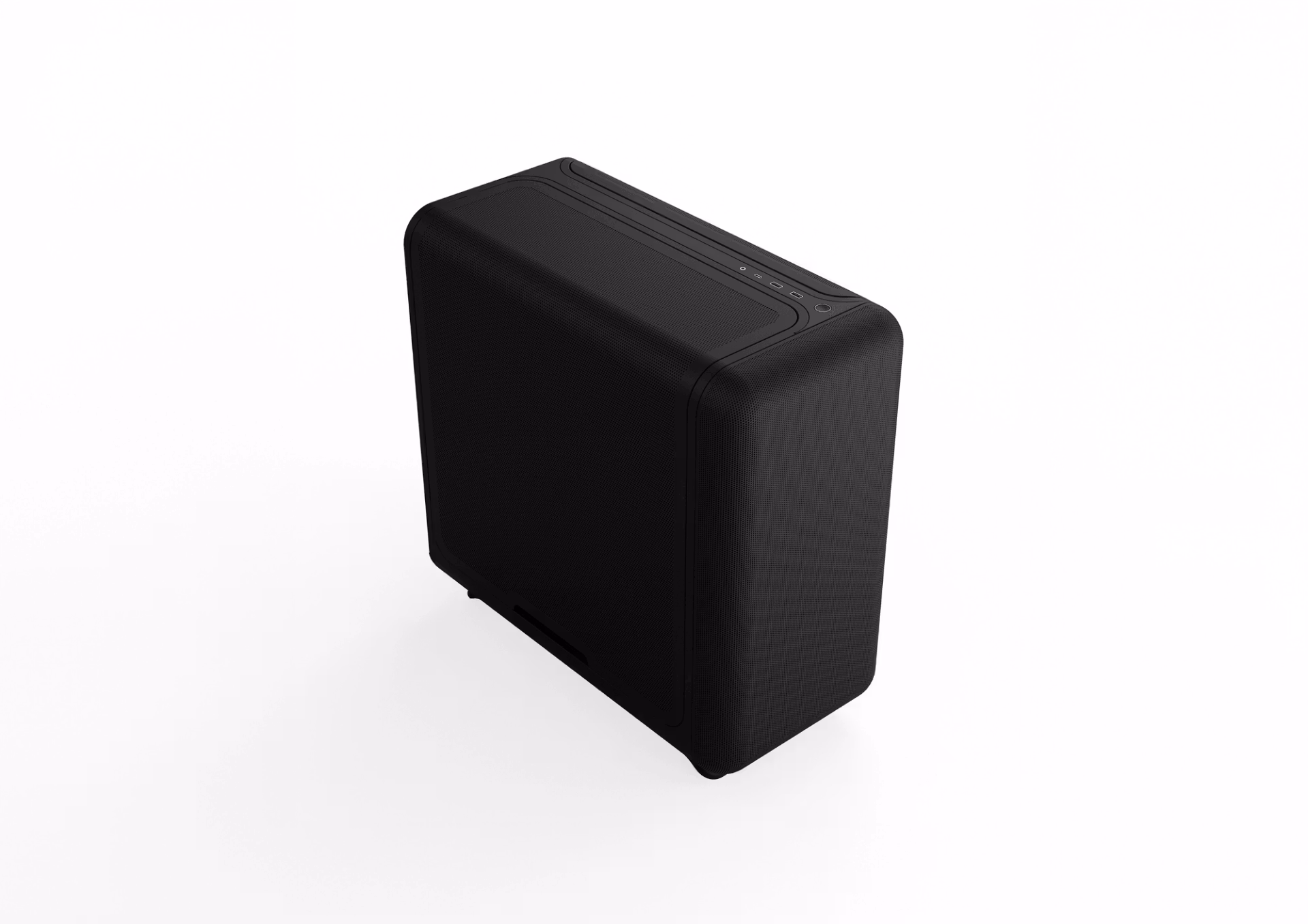 The HYTE X50 Air Desktop Cabinet sits on contemporary feet that contribute to its rounded, modern aesthetic while also lifting it slightly for airflow.