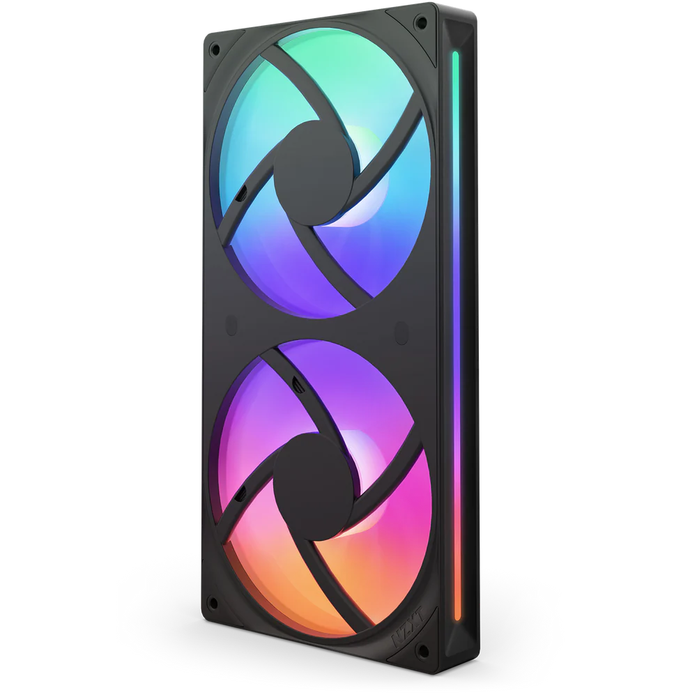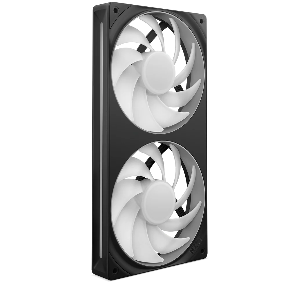 The NZXT F280 Black RGB Core Fan consists of two 140 mm PWM fans housed within a single 280 mm frame, streamlining the installation process when compared to deploying two separate fans individually.