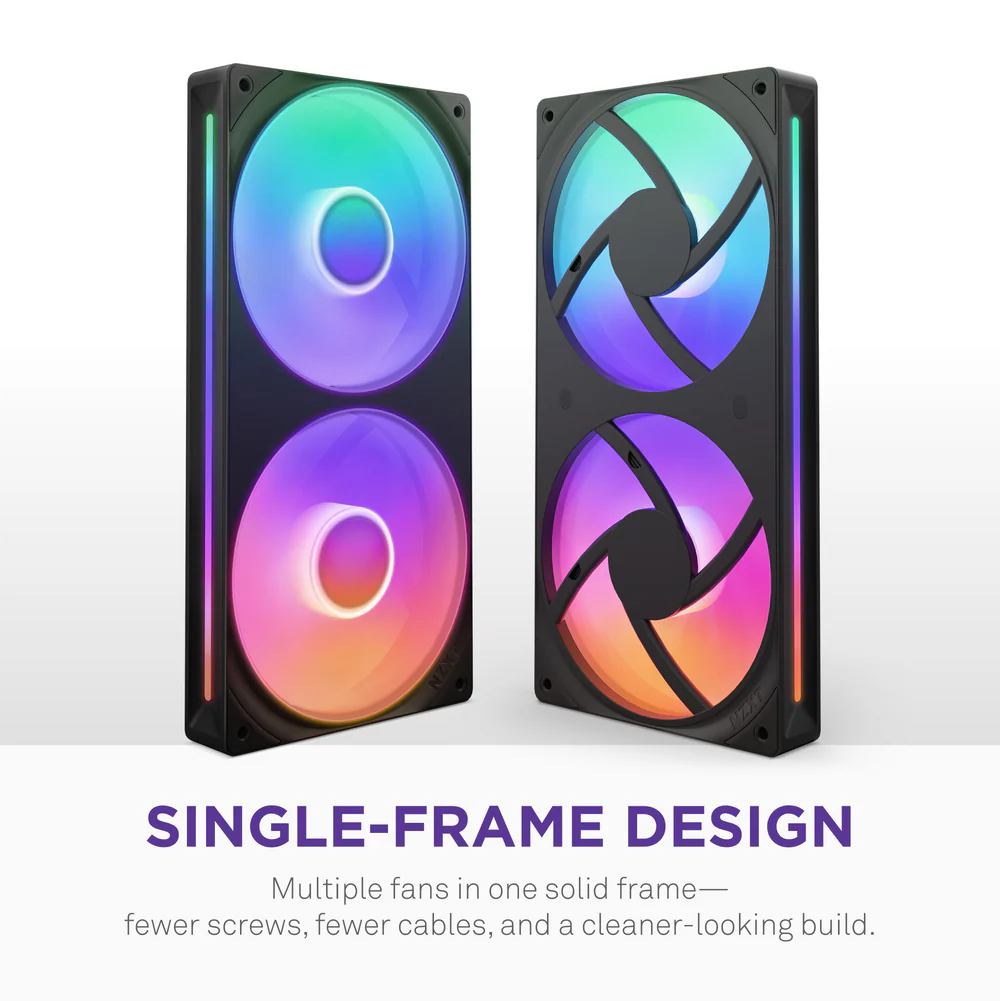 NZXT fans offer beautiful RGB lighting, clean aesthetics and optimized airflow for both cooling and visual appeal.