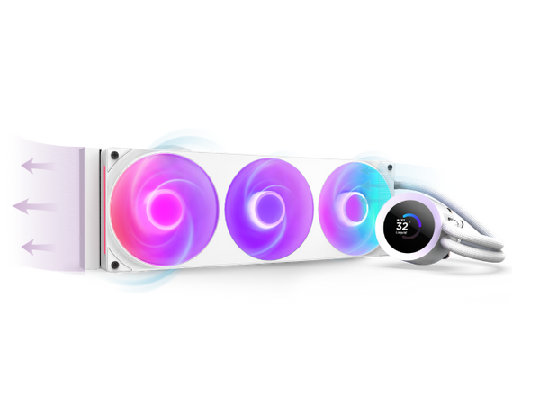 At the heart of the NZXT Kraken Plus 360 White RGB V2 Liquid Cooler is a large, triple-fan radiator built from lightweight aluminum, optimized to dissipate heat quickly and efficiently.